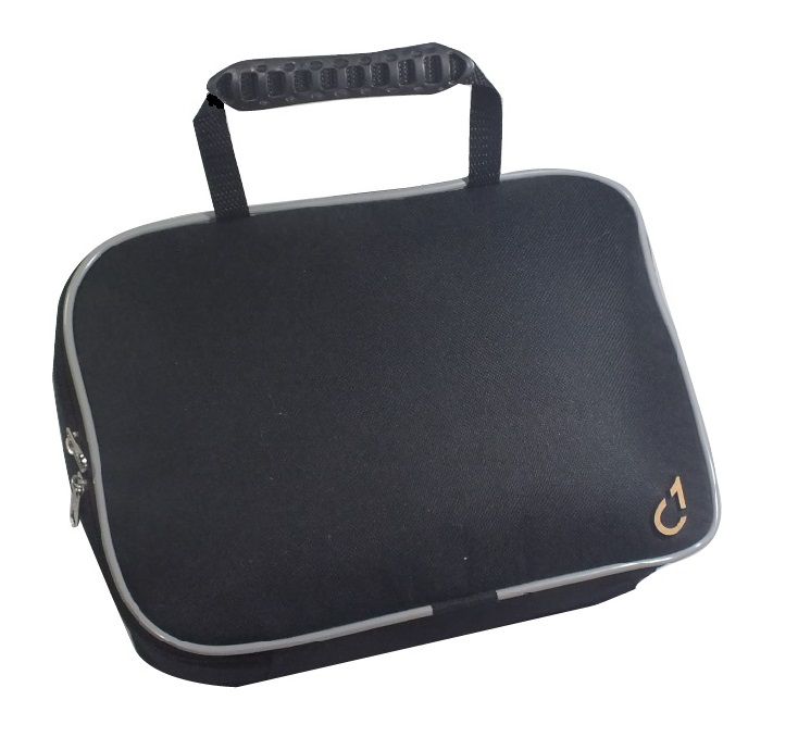 Estojo leve, prático e de fácil transporte, feita em poliéster no tamanho 27x19x6cm.