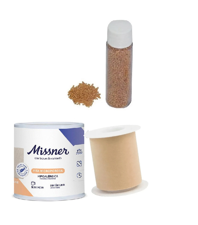 Sementes selecionadas no tamanho ideal e fita hipoalergênica para um atendimento seguro e eficaz.