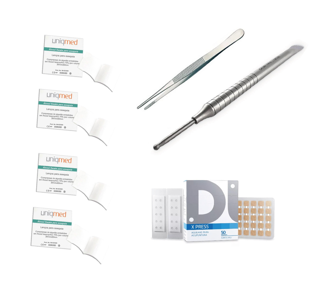 Agulhas semipermanentes DUX 1.4 mm (50 unidades) + micropore cortado pronto para uso.
